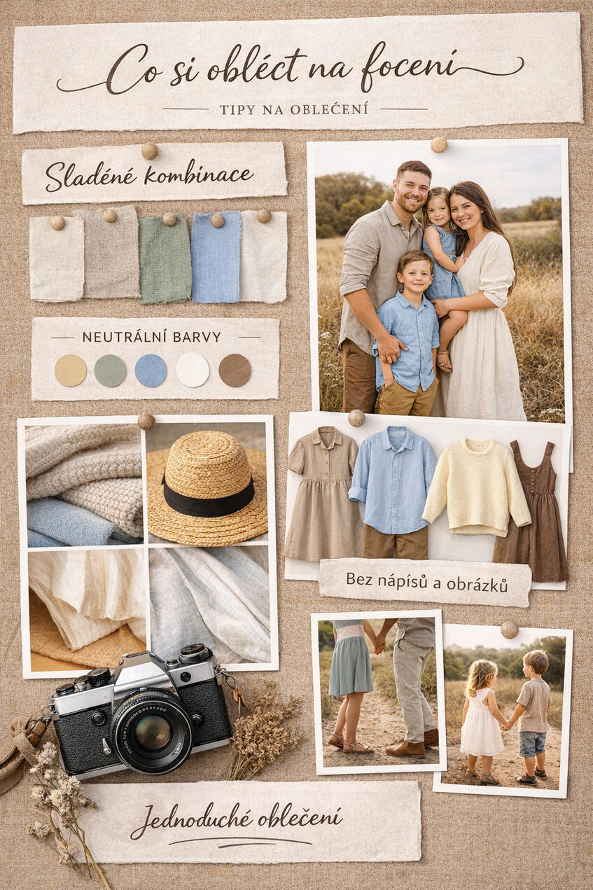 Vezměte si na sebe hlavně to, v čem se cítíte dobře, jinak si ani focení neužijete. Já za sebe vám doporučuji oblečení bez nápisů a obrázků. Spíše neutrální barvy. Jestli si nejste jistí, s výběrem ráda poradím.